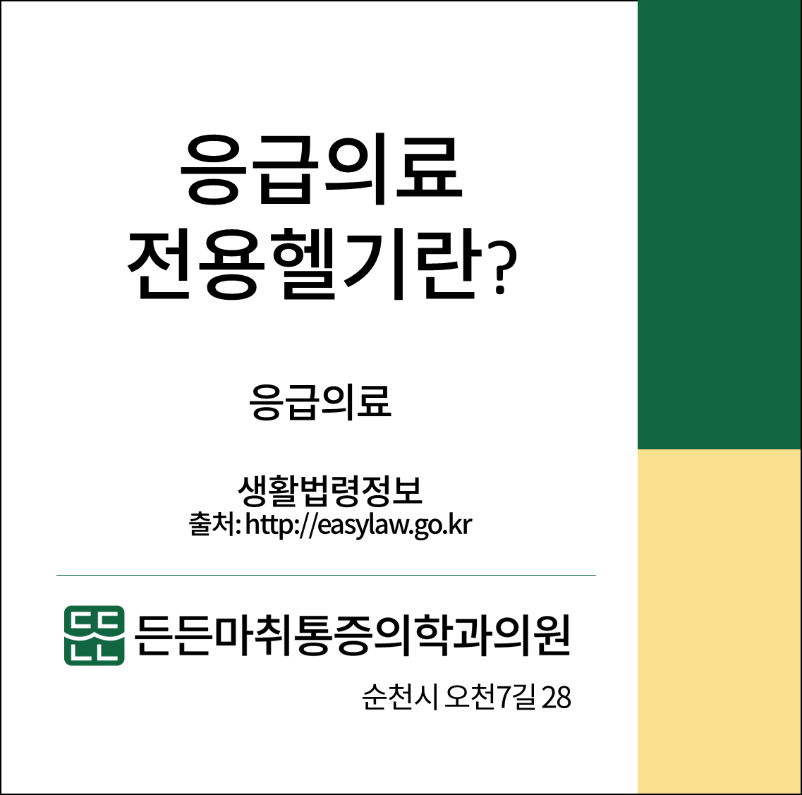 응급의료 전용헬기는 응급의료 취약지역 응급환자의 신속한 이송 및 응급처치를 위해 응급환자 항공이송을 전담하는 헬리콥터를 말합니다(「응급의료에 관한 법률」 제46조의3제1항).